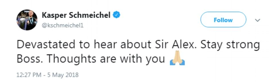 Cựu thủ môn Peter Schmeichel, người gắn bó chặt chẽ với Fergie và là một phần “xương sống” của Manchester United trong những năm 1990, đã viết trên trang cá nhân: “Thật buồn khi nghe tin về Sir Alex. Mạnh mẽ lên ông chủ, chúng tôi luôn hướng về ông”.