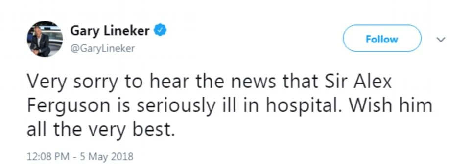 Sau khi biết tin, CLB Manchester United lập tức thông tin: “Sir Alex Ferguson đã trải qua một ca phẫu thuật khẩn cấp hôm nay vì xuất huyết não. Ca phẫu thuật đã diễn ra tốt đẹp nhưng ông ấy cần được chăm sóc đặc biệt một thời gian để hồi phục. Gia đình ông ấy yêu cầu mọi người tôn trọng sự riêng tư trong vấn đề này”.