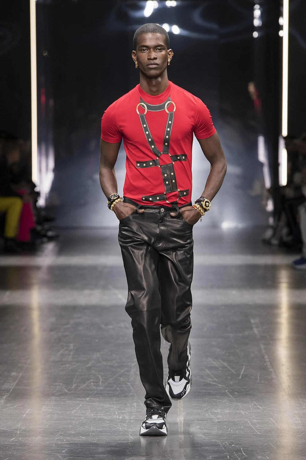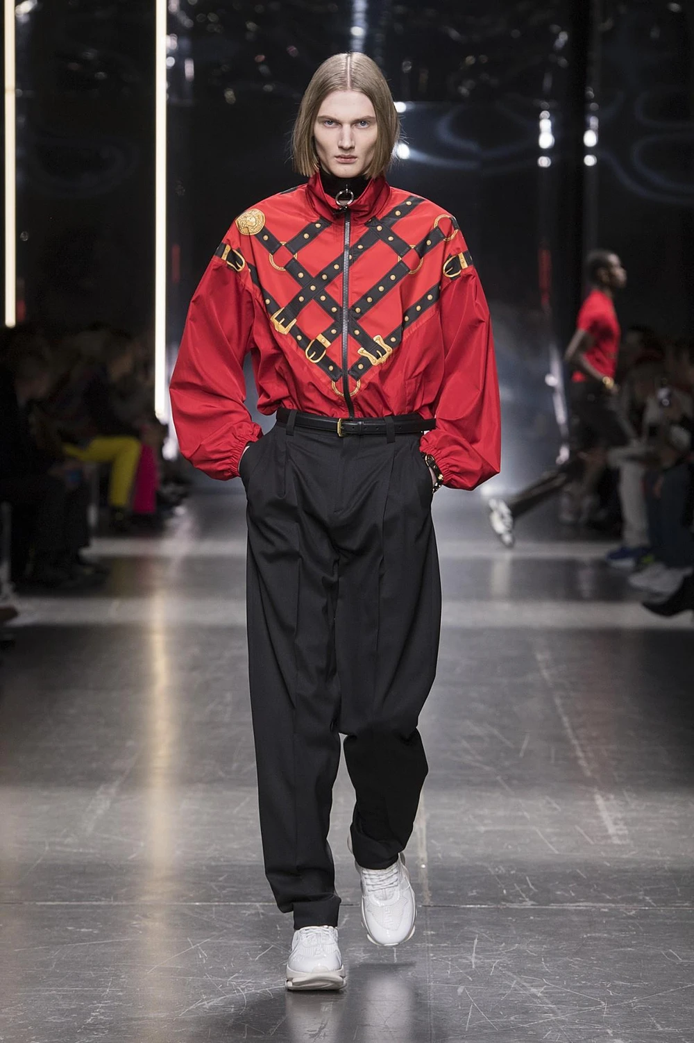 Trong BST Thu Đông 2019, thương hiệu Versace cũng ưu ái dành riêng cho các chàng trai cá tính những món đồ vô cùng chất chơi với họa tiết harness.