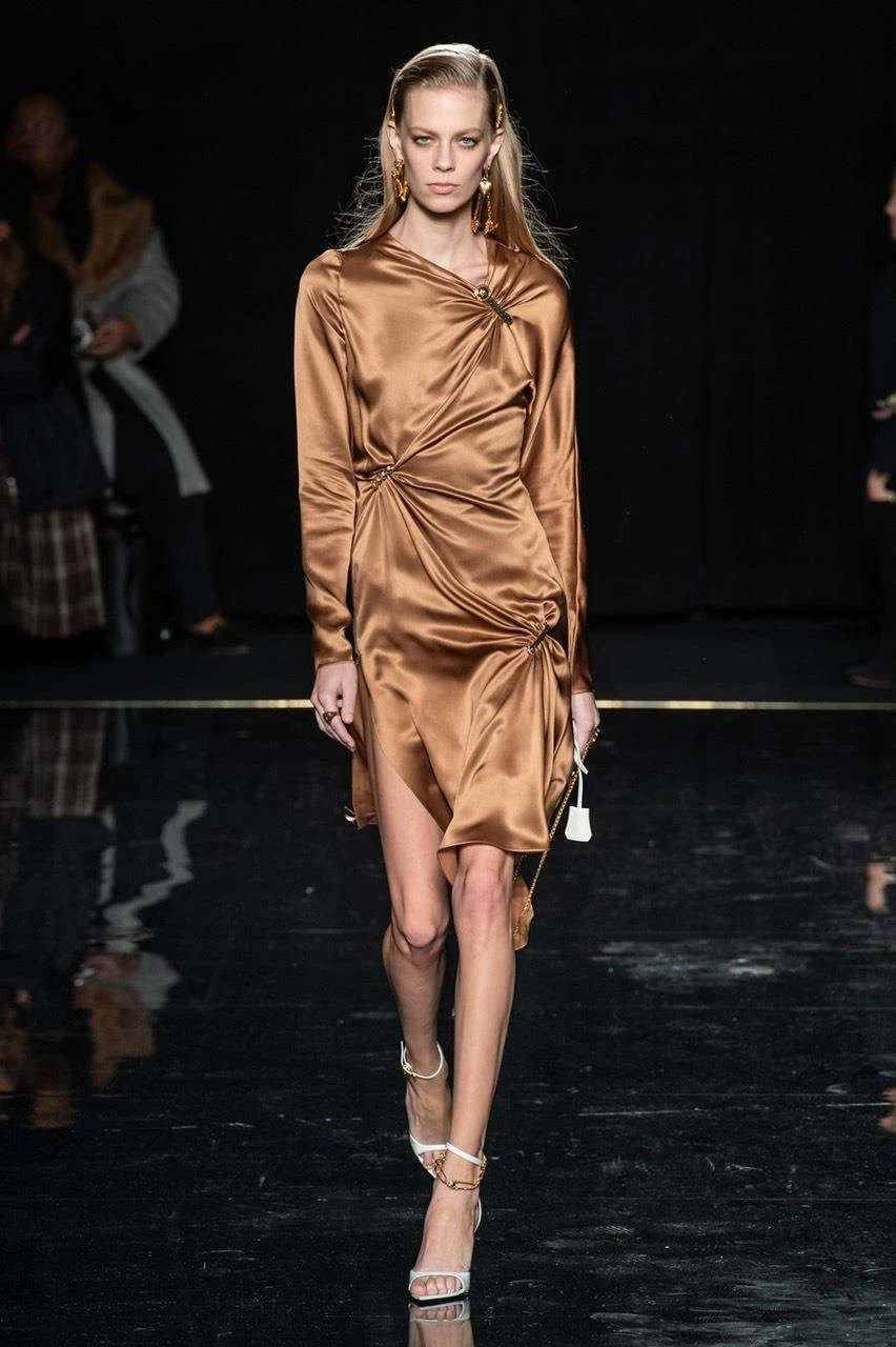 Ngay cả với những tone màu trầm gắn liền với cảm hứng mùa thu lãng mạn, Donatella Versace vẫn luôn tinh tế đưa vào sự trẻ trung, thổi một làn gió mới và lôi cuốn vào những sáng tạo của mình.