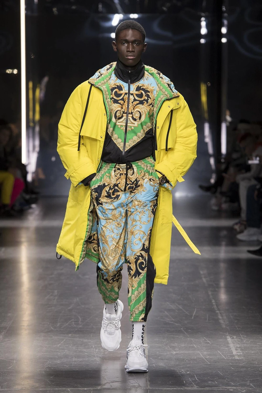 Đã từng ấn tượng với những họa tiết màu nổi bật technicolor baroque thì giới mộ điệu không thể bỏ qua họa tiết fluo barocco. Sự kết hợp giữa màu sắc neon và họa tiết baroque của Versace sẽ tạo nên hiệu ứng thị giác vô cùng mãn nhãn, dành cho những anh chàng không ngần ngại trở thành tâm điểm của mọi sự chú ý.