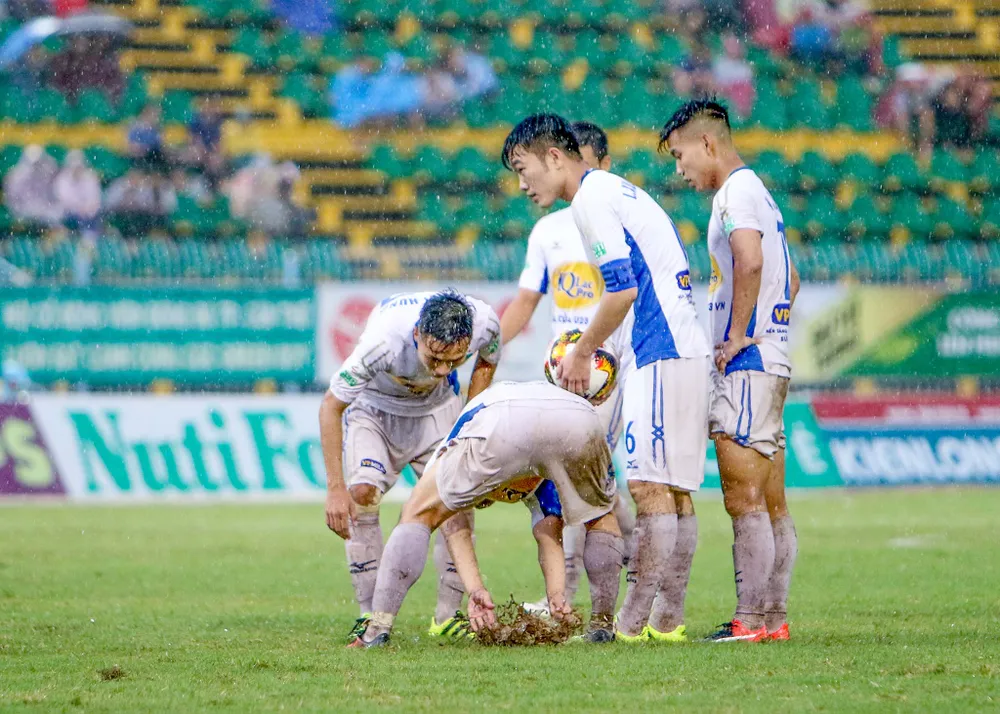 Rất tiếc rằng trận đấu chiều nay trời mưa tầm tã, tối mù mịt, hiệp 1 diễn ra như một trận thủy chiến, sang hiệp 2 thì mới khá lên được chút. Khán giả đến sân không nhiều.