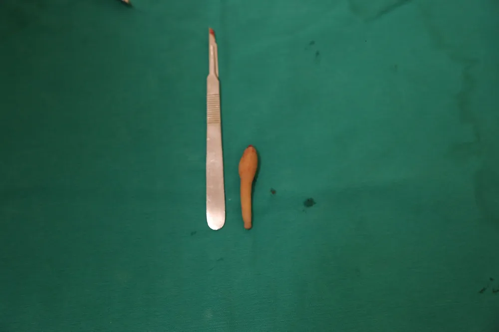 Dị tật đuôi được cắt ra khỏi cơ thể bé H. Ảnh: BCVV