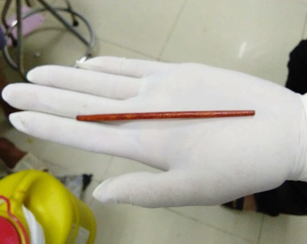 Tại BV, ông D. được chụp X-quang nhưng không rõ vật gì nằm trong niệu đạo do dị vật không phải kim loại. Sau đó, các bác sĩ phải dùng thủ thuật xử lý thì “lòi” ra cây đũa dài 12 cm. Ông D. cũng không biết lý do tại sao lại có cây đũa trong niệu đạo.