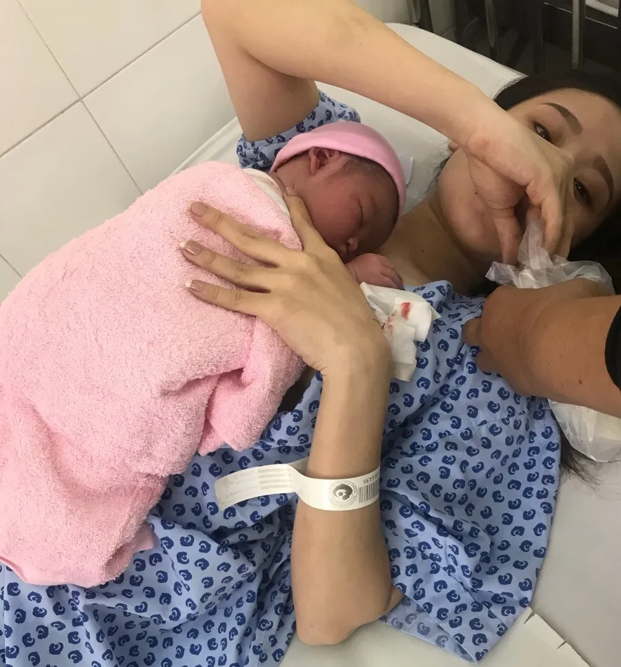 Chị Duyên dù đau đớn nhưng vỡ òa niềm hạnh phúc khi con chào đời khỏe mạnh. Ảnh: AL