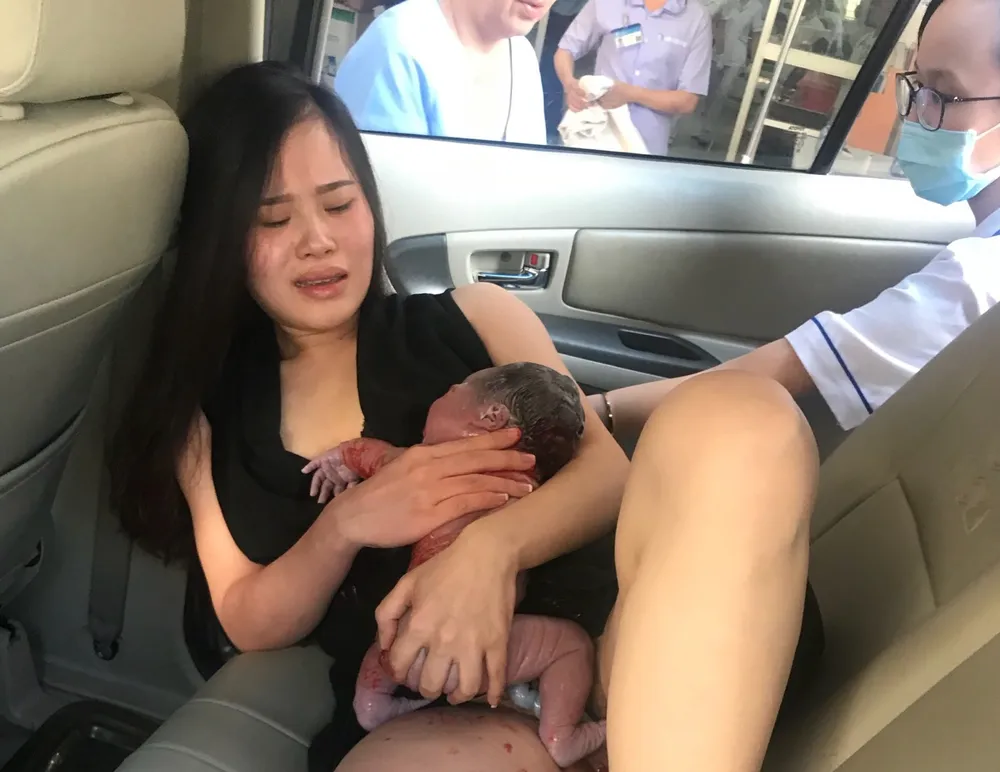 Đứa con đầu hai tuổi cũng được cho theo tháp tùng cha mẹ không quên kèm theo một bịch bỉm. Anh Long cho biết phải mất khoảng 15 phút tài xế mới đến được nhà anh để rước khách vì mới sáng sớm, người ta đổ ra đường đi làm. Tuy nhiên, đi được giữa chừng trên đường Cách Mạng Tháng Tám đến đầu đường Nguyễn Thượng Hiền, vợ anh bấu tay chồng nói: “Anh ơi, em muốn rặn, con sắp ra rồi!”.