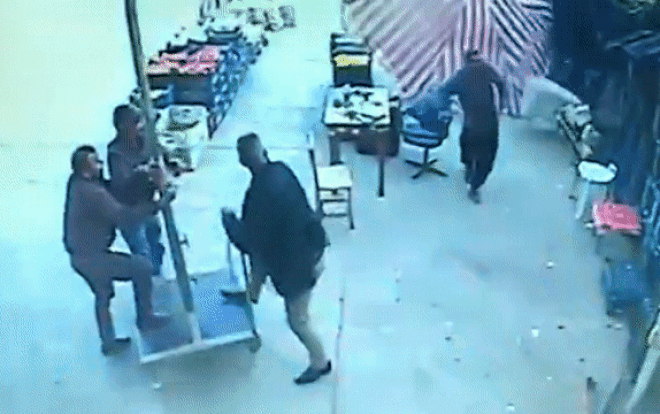 Một đoạn video do camera quan sát ghi lại cho thấy hai người đàn ông đang ngồi ăn tại một chiếc bàn nhỏ được đặt trên vỉa hè ở tỉnh Osmaniye, Thổ Nhĩ Kỳ, thì một cơn gió mạnh bắt đầu xuất hiện. Hai người đàn ông nhanh chóng chạy tới để phụ giúp một người đàn ông khác giữ chiếc dù lớn khỏi bị gió thổi bay, theo trang tin Daily Mail.