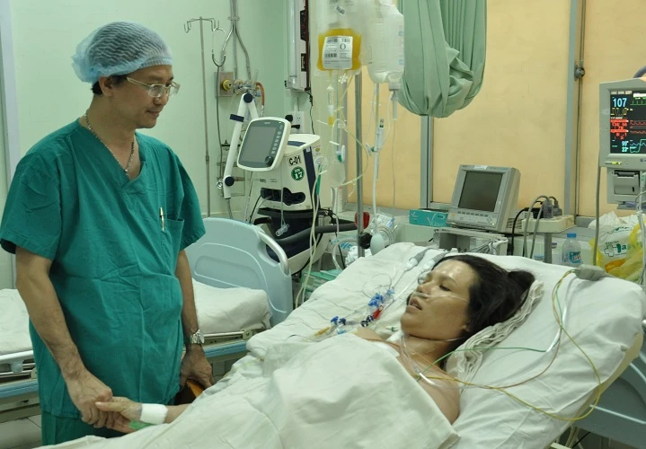 Bệnh nhân đang được chăm sóc tích cực sau mổ bắt con và thay gốc động mạch chủ. Ảnh: Tùng Sơn