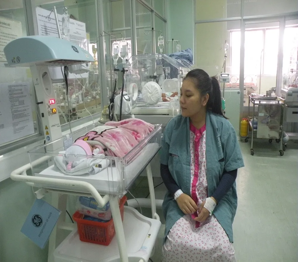 Dù bị dây rốn quấn cổ 4 vòng nhưng bé đã được cứu sống nhờ sự nhanh trí của chị nữ hộ sinh. Ảnh: Nguyễn Quyên