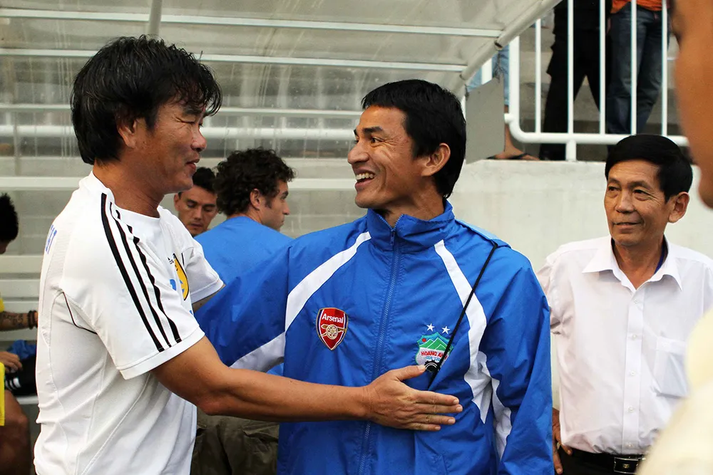 HLV Kiatisak thời gian đầu vừa làm vừa học HLV và HLV Phan Thanh Hùng khi còn làm HLV Hà Nội. Ảnh: XUÂN HUY