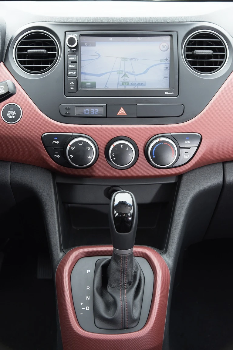 Xe có màn hình cảm ứng 7 inch đa chức năng, hỗ trợ giải trí với các kết nối các chức năng bluetooth/AUX/MP3/radio đồng thời phát hình đa định đạng với độ phân giải cao. Bên cạnh đó, Grand i10 là chiếc xe duy nhất trong phân khúc được trang bị hệ thống bản đồ định vị dẫn đường do Hyundai nghiên cứu và phát triển dành riêng cho thị trường Việt Nam. Bên cạnh các chức năng cơ bản, hệ thống bản đồ này còn được tích hợp các thông tin hữu ích như điểm dịch vụ Hyundai 3S trên cả nước, dịch vụ ăn uống, giải trí,... tạo nên những tiện ích dành cho khách hàng.