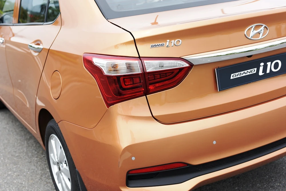 Các chi tiết khác thể hiện sự tinh tế trong thiết kế của Grand i10 như tay nắm cửa mạ Crom, đèn xi-nhan tích hợp cùng gương chiếu hậu, đèn phanh trên cao dạng LED... tạo nên một ngoại hình hấp dẫn hàng đầu phân khúc mang phong cách châu Âu hiện đại.