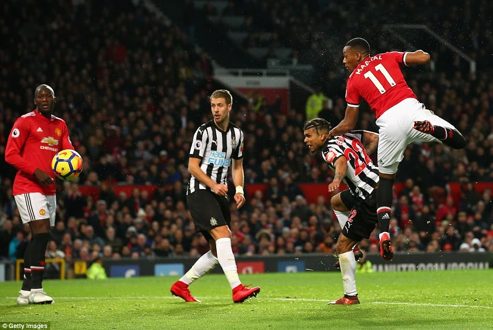 Đến phút 31, MU bất ngờ tìm được bàn gỡ trong thế bế tắc nhờ cầu thủ mới trở lại sau chấn thương Paul Pogba. Sau một loạt pha đi xử lý bên cánh phải nhằm loại bỏ hậu vệ đối phương, Pogba có pha bấm bóng vào trong cho Martial bật cao đánh đầu tung lưới Newcastle san bằng tỉ số 1-1 cho MU.