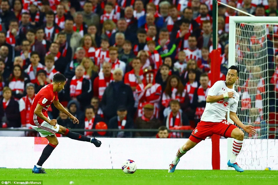 Đang có một thế trận tốt cùng sự hưng phấn nhất định, Southampton lại bị dội 1 gạo nước lạnh ở phút 38. Nhận đường chuyền của Rojo, Lingard khống chế khéo léo trước khi ra chân dứt điểm về góc xa nhân đôi cách biệt cho "Quỷ đỏ".