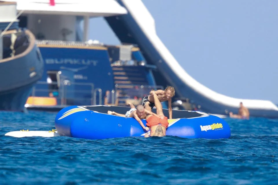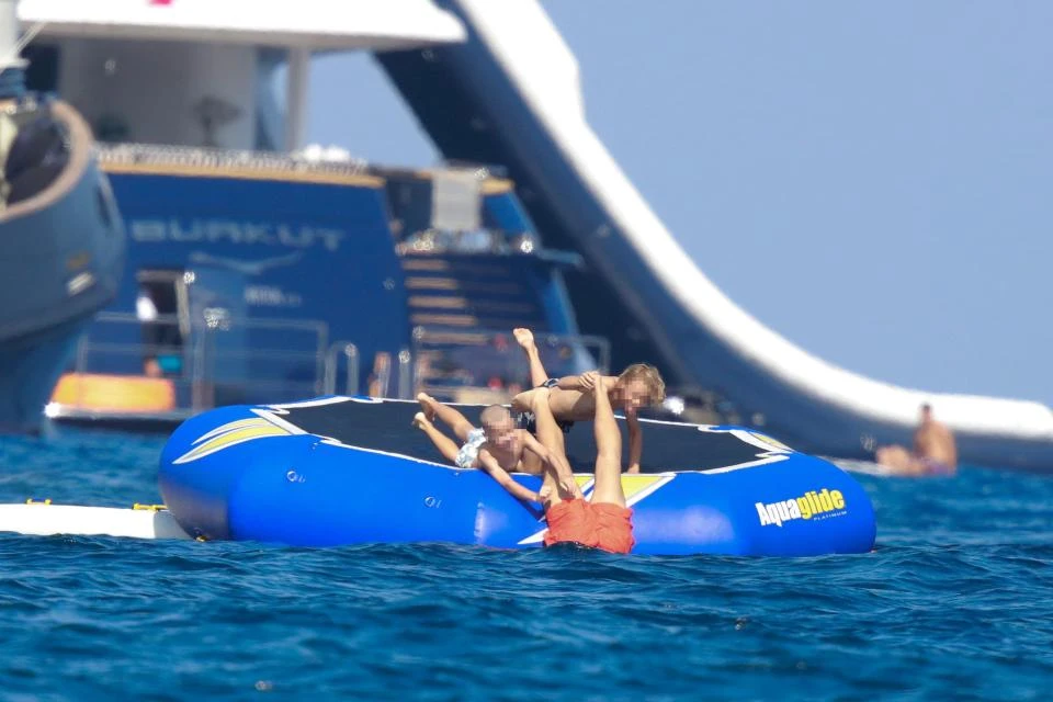 Ibra vui đùa cùng với hai con trên chiếc xuồng. Anh chúc đầu xuống làn nước biển địa Trung Hải, trong khi hai con trên xuồng ra sức kéo và giữ chân anh.