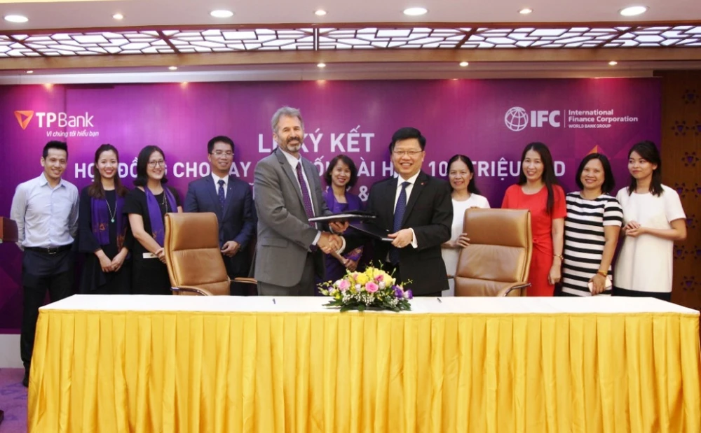 Chiều 6-7, tại trụ sở chính của Ngân hàng TMCP Tiên Phong (TPBank) đã diễn ra lễ ký kết hợp đồng cho vay hợp vốn dài hạn có giá trị 100 triệu USD (tương đương 2.300 tỉ VND) giữa Tổ chức Tài chính Quốc tế (IFC) và TPBank.
