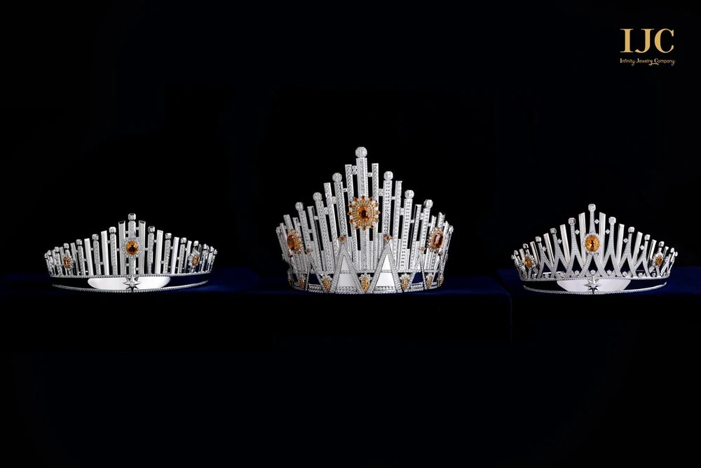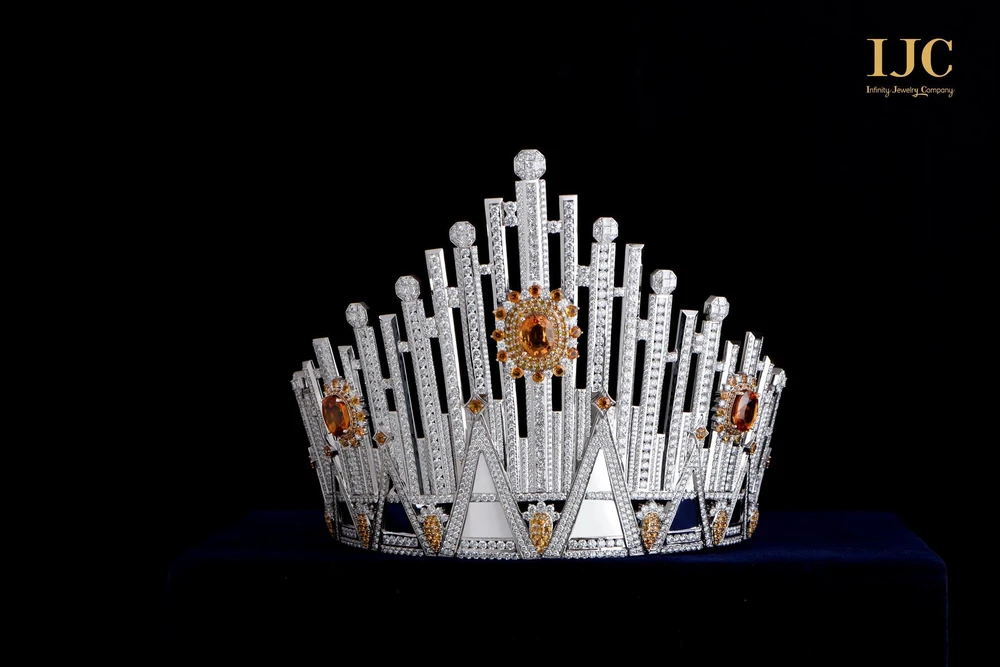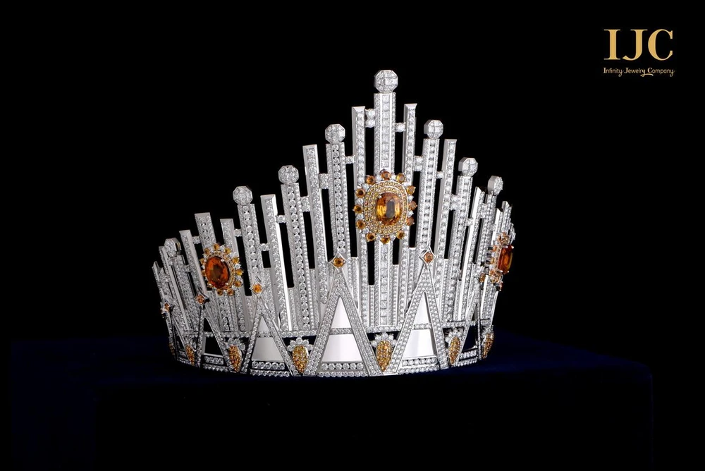 Vương miện “Infinity by IJC” được chế tác hoàn toàn từ vàng trắng cao cấp, với 279 viên Sapphire vàng và 2.137 viên Kim cương mang đến sự sang trọng của một chiếc vương miện vượt qua mọi vương miện.