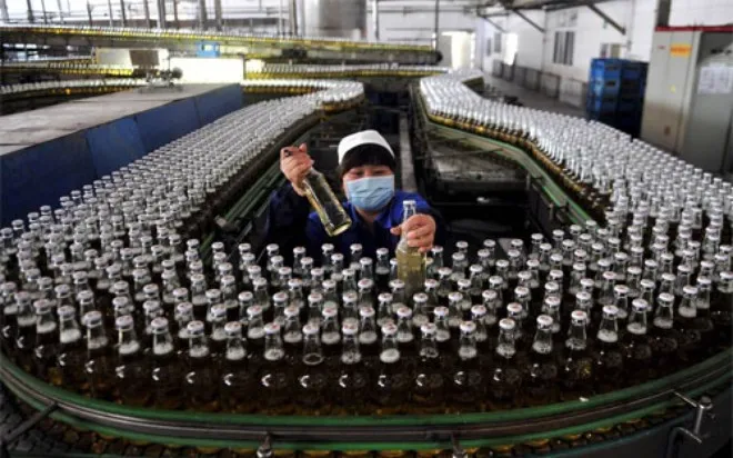 Công nhân làm việc trong một nhà máy bia ở Thẩm Dương, Trung Quốc. (Reuters)