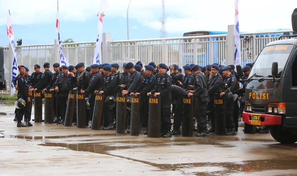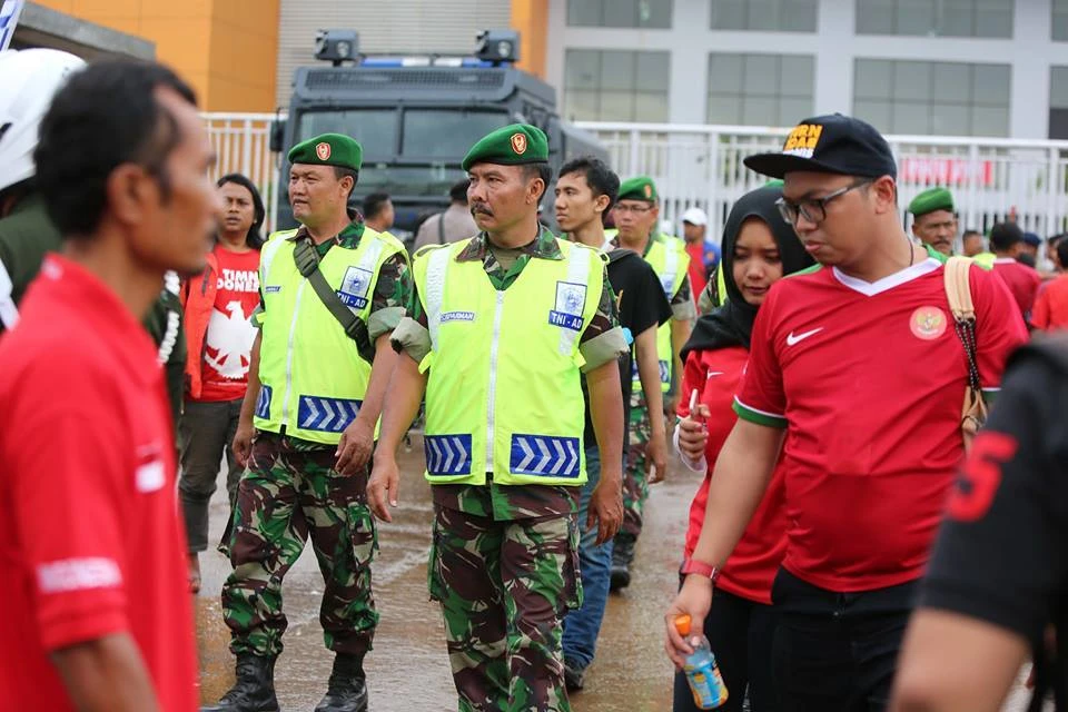 Lực lượng an ninh của Indonesia được chuẩn bị rất kỹ càng trước trận đấu. Ảnh: ANH ĐỒNG.