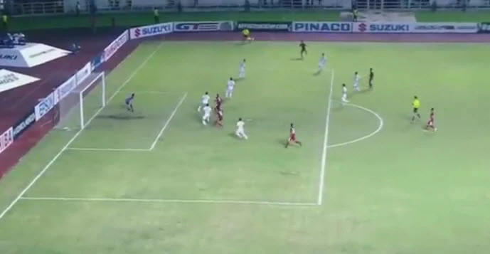 Phút 34, Thành Lương phải nằm sân sau pha cao chân của Yama Pranata nhưng trọng tài vẫn cho trận đấu tiếp tục.