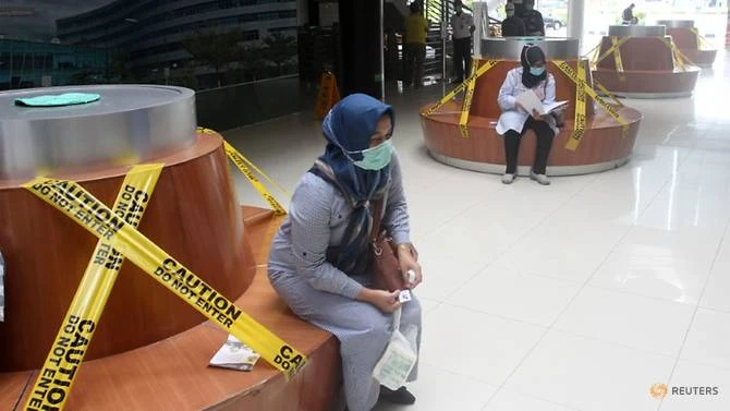 Người dân giữ khoảng cách xã hội tại một bệnh viện ở Padang, tỉnh Tây Sumatera, Indonesia. Ảnh: REUTERS