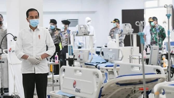 Tổng thống Indonesia Joko Widodo tại bệnh viện khẩn cấp điều trị bệnh nhân COVID-19 ở Jakarta. Ảnh: REUTERS