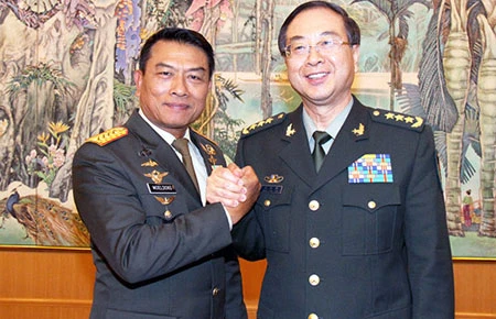 Tướng Moeldoko cho biết trong chuyến viếng thăm Trung Quốc vào tháng trước, ông đã giải thích với người đồng cấp Trung Quốc Phòng Phong Huy (bên phải ảnh) rằng Indonesia là một nước có chủ quyền và Indonesia sẽ làm những gì cần thiết để bảo vệ chủ quyền.