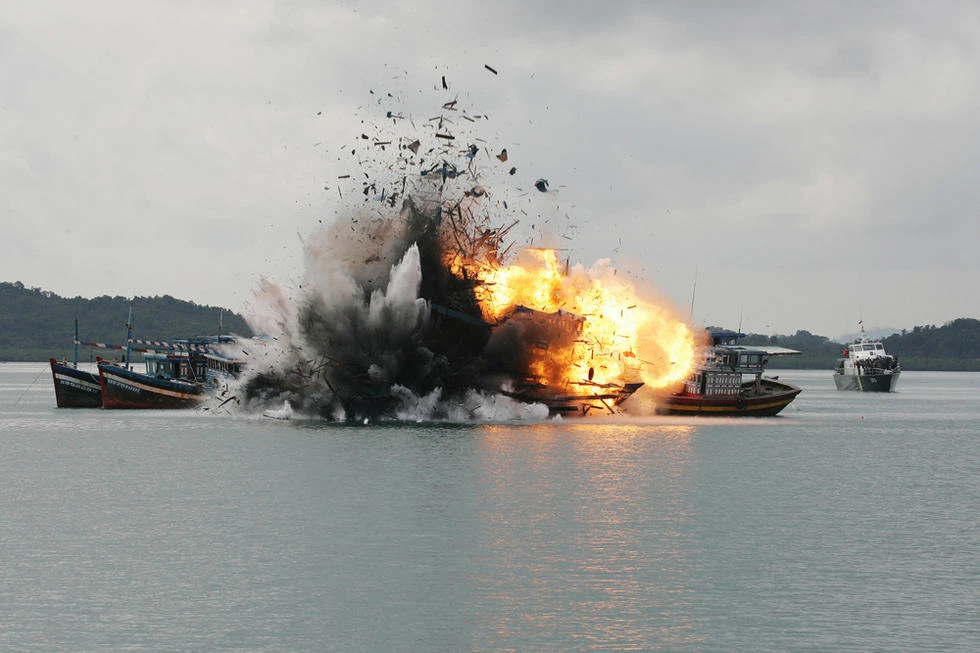 Indonesia đã thực hiện rất cứng rắn chính sách “đánh chìm tàu” kể từ khi Tổng thống Joko “Jokowi” Widodo lên nắm quyền. Báo cáo cho biết chỉ trong năm đầu Tổng thống Widodo lãnh đạo, nước này đã đánh chìm 106 tàu đánh bắt cá trái phép của nước ngoài, phần lớn là Việt Nam, Phillipines và Thái Lan.