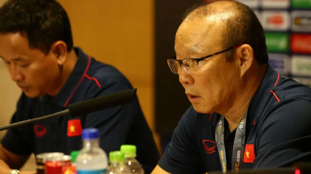 HLV Park Hang-seo trong một buổi họp báo của tuyển Việt Nam. ẢNH: VFF