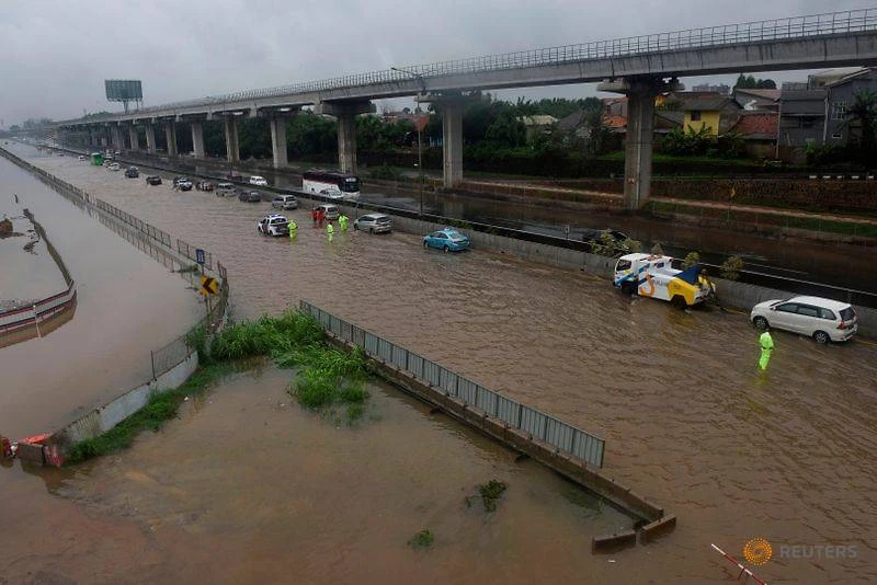 Nhiều phương tiện bị chết máy trên đường ở Bekasi, gần Jakarta, Indonesia.Ảnh: REUTERS