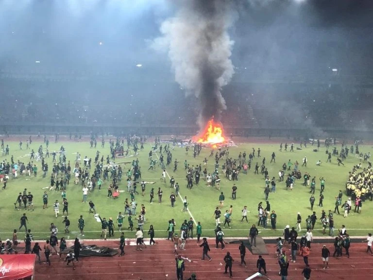 Tối 29-10, sân Gelora Bung Tomo đã chìm trong khói lửa và cảnh bạo động vì các cổ động viên của CLB Persebaya Surabaya thất vọng khi đội nhà nhận thất bại 2-3 trước PSS Sleman và tràn xuống sân đập phá hỗn loạn.