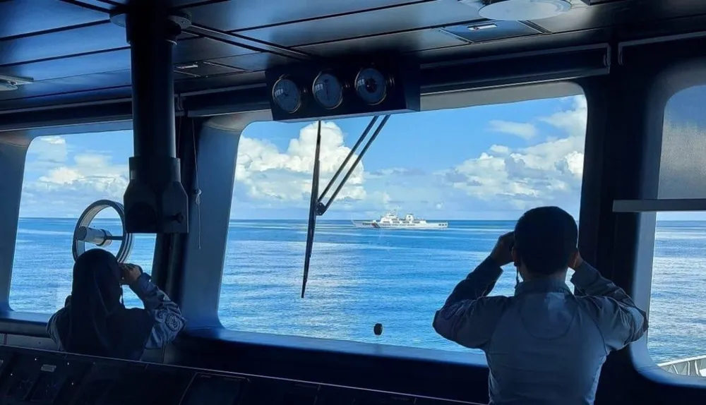 Thành viên thuộc Cơ quan An ninh hàng hải Indonesia quan sát tàu hải cảnh Trung Quốc ở vùng biển xung quanh Natuna. Ảnh: BAKAMLA