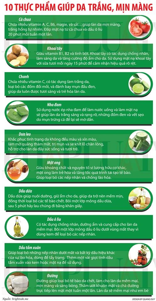 Infographic: 10 thực phẩm giúp da trắng, mịn màng