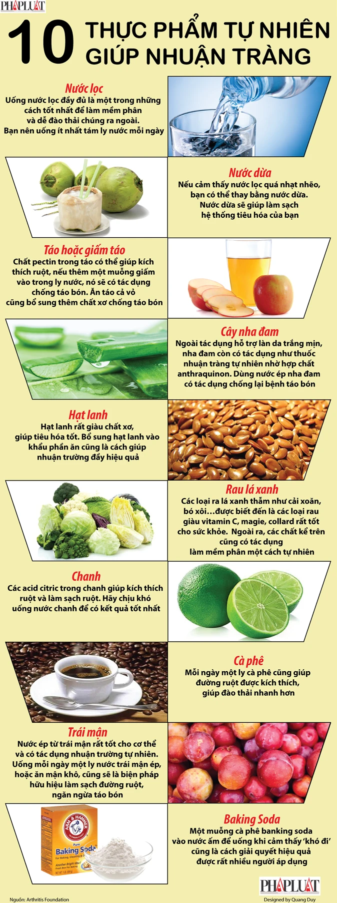 Infographic: 10 thực phẩm tự nhiên giúp nhuận tràng