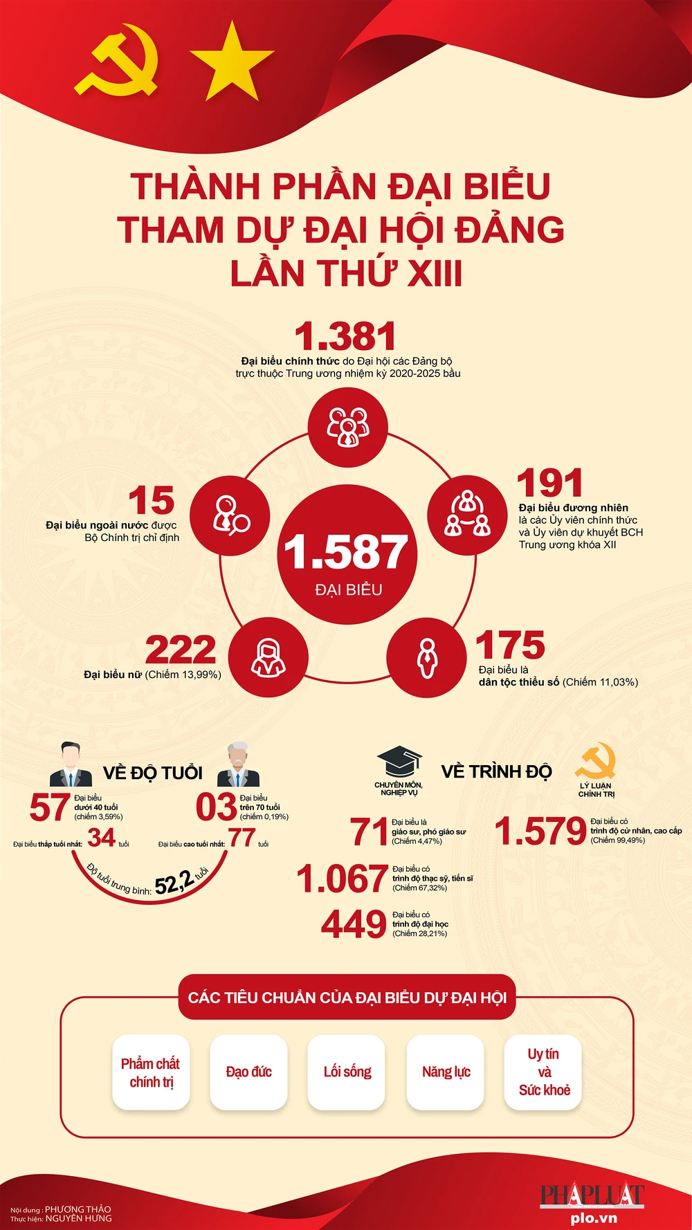 Infographic: 1.587 đại biểu dự Đại hội XIII của Đảng