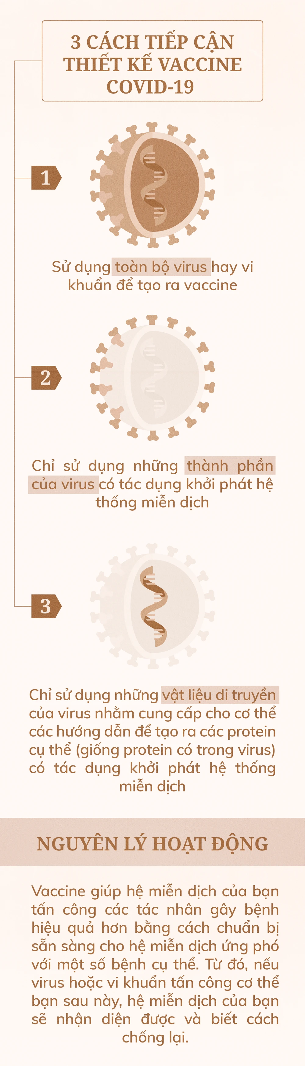 (PLO)- Tính đến tháng 12-2020, trên thế giới đã có hơn 200 “ứng cử viên vaccine” phòng chống đại dịch COVID-19. Trong số này, có ít nhất 52 ứng cử viên vaccine đang được thử nghiệm trên người. Dưới đây là 3 cách tiếp cận chính để thiết kế các loại vaccine Covid-19 khác nhau.