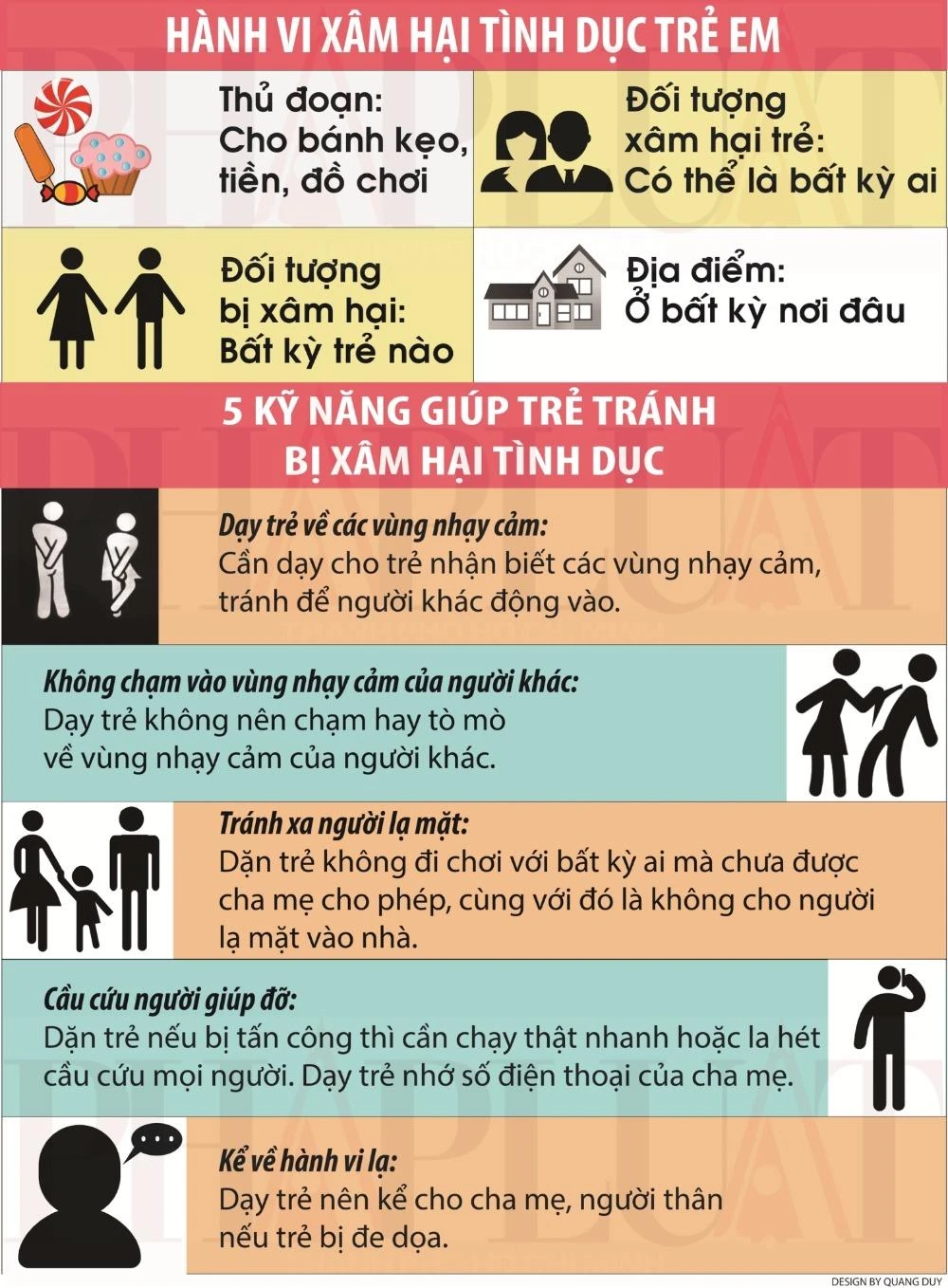 (PLO)- 5.300 vụ xâm hại tình dục trẻ em được phát hiện trong năm năm qua (2011-2015). Hầu hết nghi can phạm tội xâm hại tình dục trẻ em là những người gần gũi với nạn nhân. Dưới đây là năm nguyên tắc vàng giúp các bé tránh bị xâm hại.