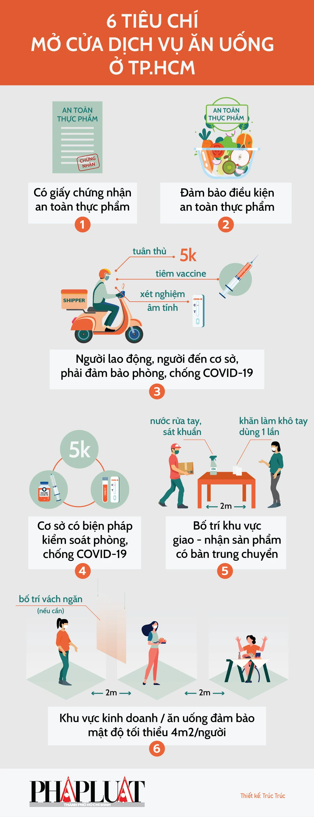 Infographic: 6 tiêu chí mở cửa dịch vụ ăn uống ở TP.HCM