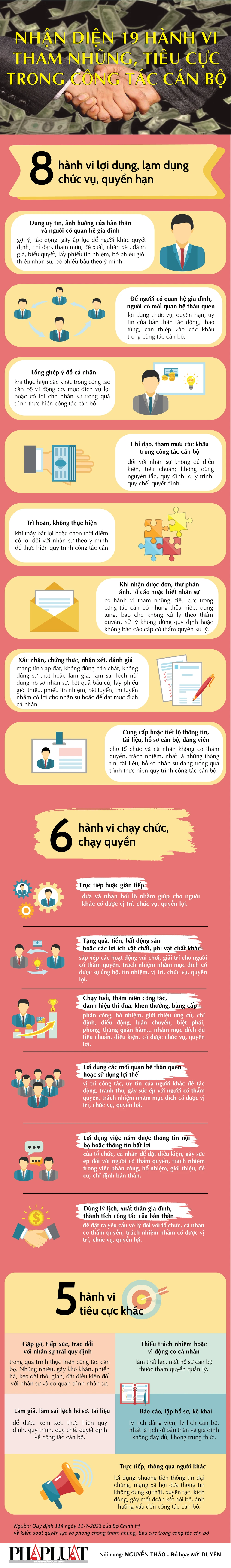 Infographic: Bộ Chính trị nhận diện 19 hành vi tham nhũng, tiêu cực trong công tác cán bộ