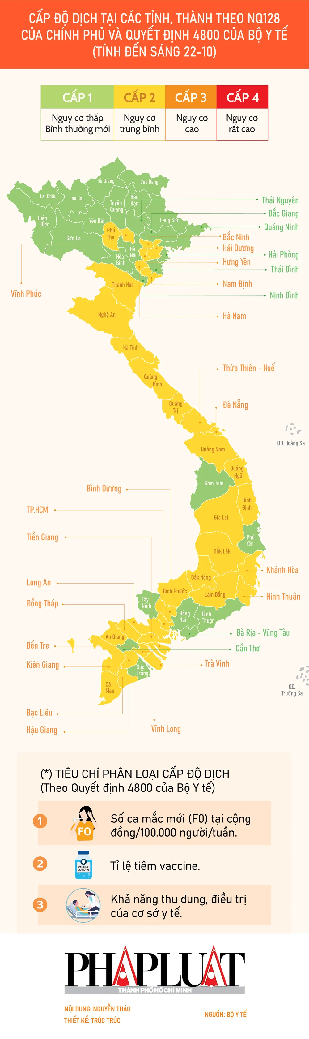 Chi tiết cấp độ dịch của 63 tỉnh, thành theo Nghị quyết 128 của Chính phủ và Quyết định 4800 của Bộ Y tế.