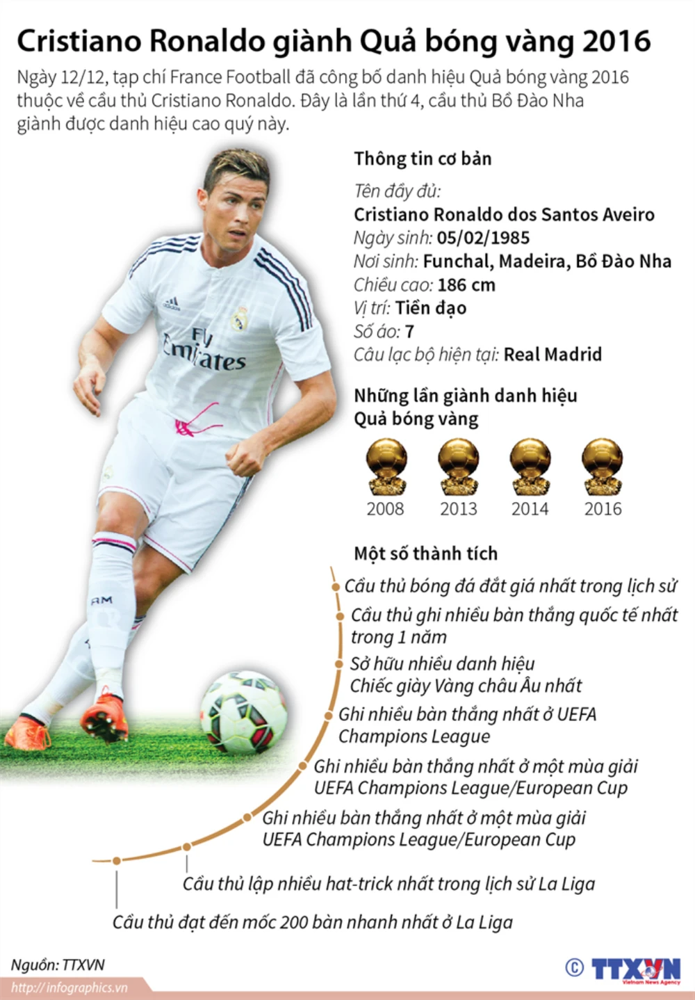 Infographic: Cristiano Ronaldo giành Quả bóng vàng 2016