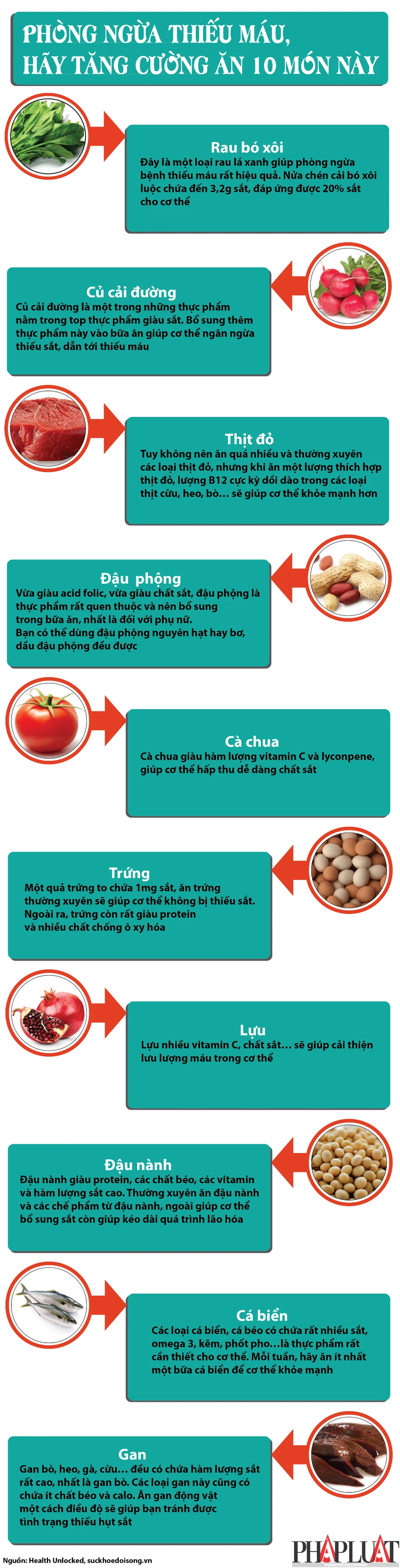 Infographic: Để phòng ngừa thiếu máu, hãy ăn 10 món này