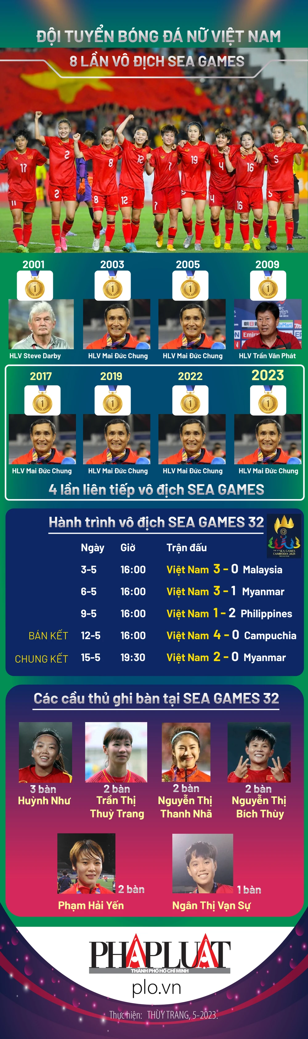 Infographic: Hành trình tuyển nữ Việt Nam 8 lần giành HCV SEA Games
