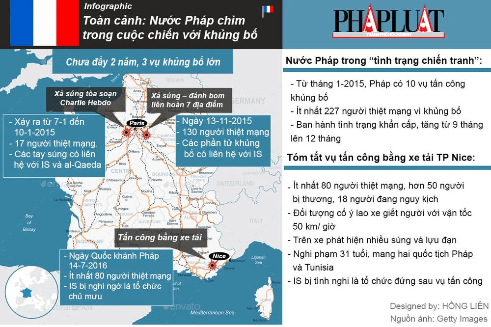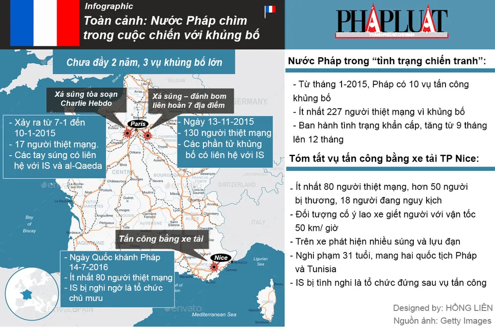 Infographic: Nước Pháp chìm trong cuộc chiến với khủng bố
