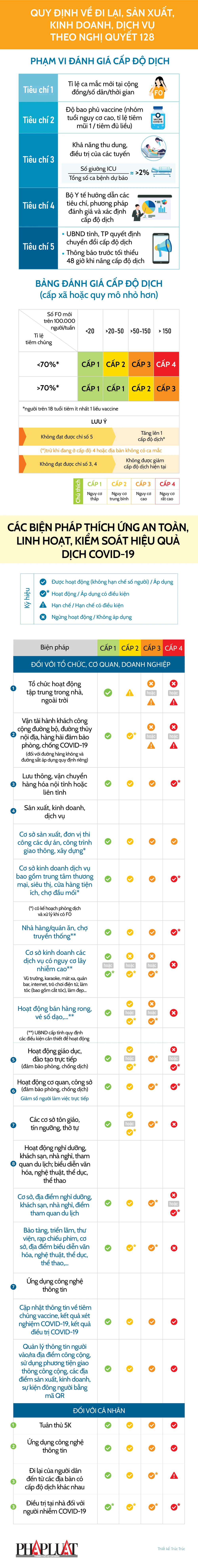 Infographic: Quy định đi lại, sản xuất, kinh doanh, dịch vụ theo Nghị quyết 128