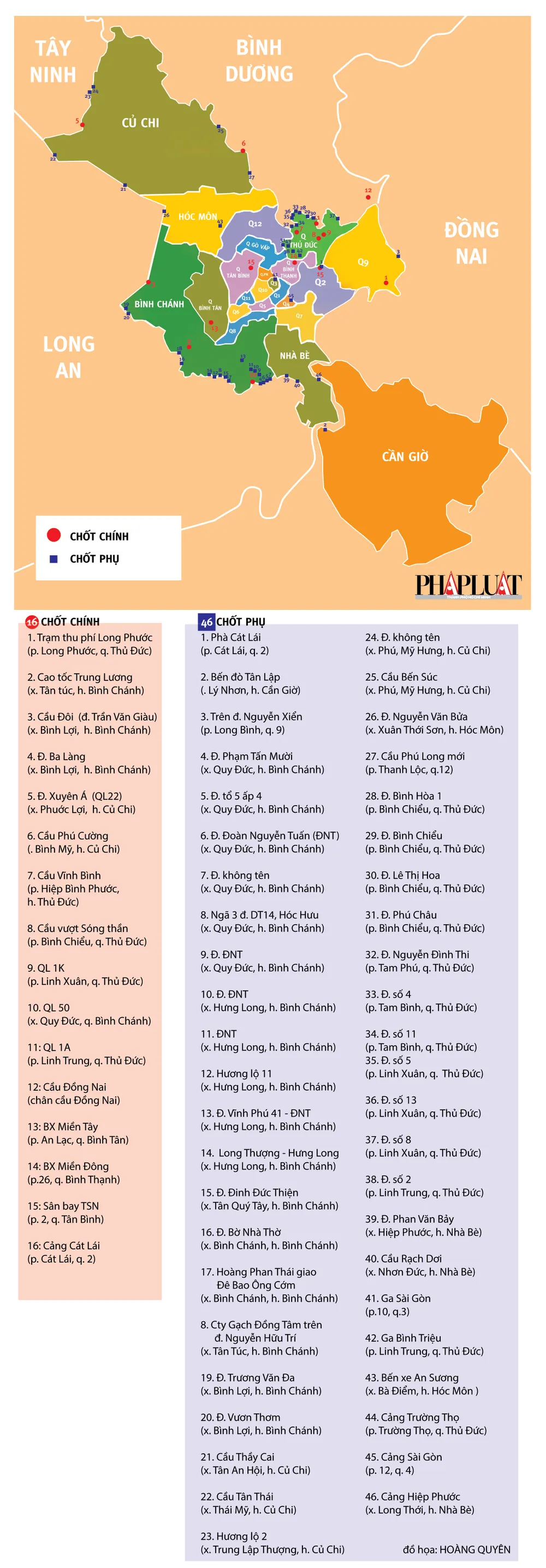 Infographic: Vị trí 62 chốt, trạm kiểm soát COVID-19 ở TP.HCM