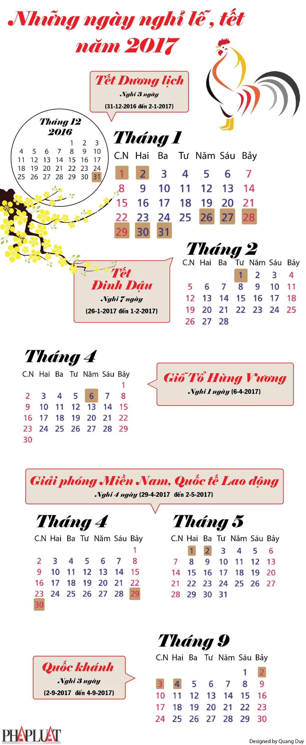 Infographic:Lịch nghỉ lễ, tết cả năm 2017
