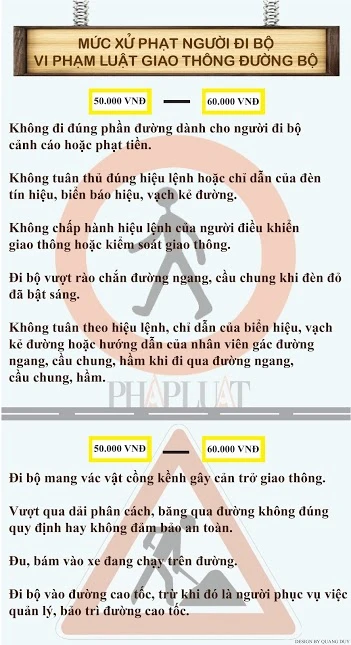 Infographic:Người đi bộ vi phạm luật giao thông, bị phạt thế nào?