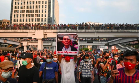 Hôm 7-2 vừa qua, hàng chục nghìn người đã đổ ra đường phố Yangon, đánh dấu ngày thứ hai diễn ra các cuộc biểu tình ở thành phố lớn nhất Myanmar để phản đối cuộc chính biến hôm 1-2. Những đám đông khổng lồ từ khắp các ngõ ngách của Yangon đã tụ tập lại và cùng hướng về chùa Sule ở trung tâm thành phố.