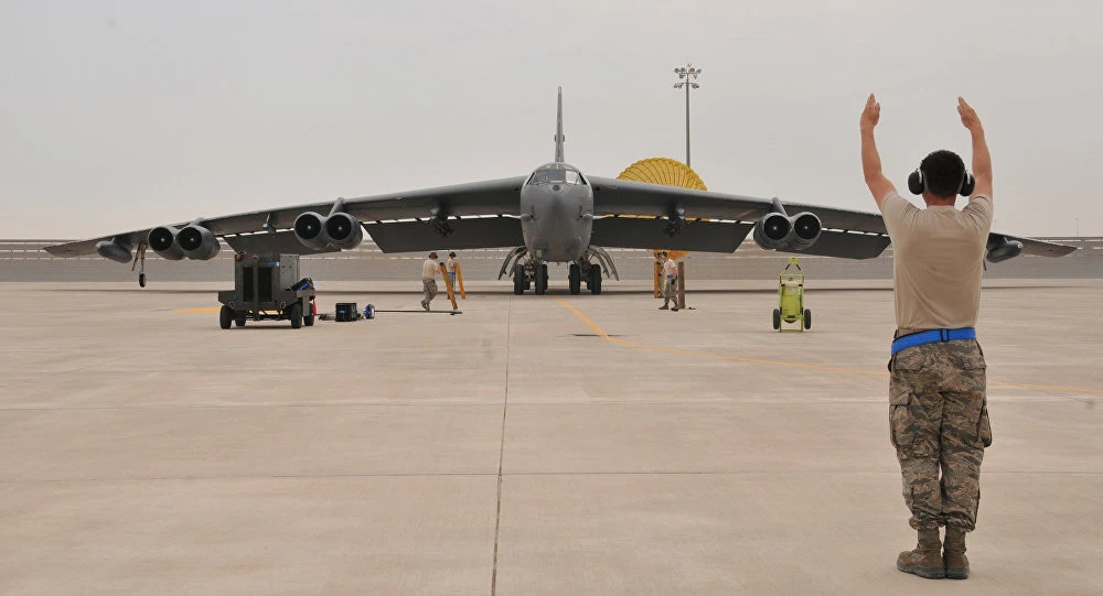 Máy bay ném bom B-52 của Mỹ tại căn cứ không quân Al Udeid, Qatar. Ảnh: REUTERS